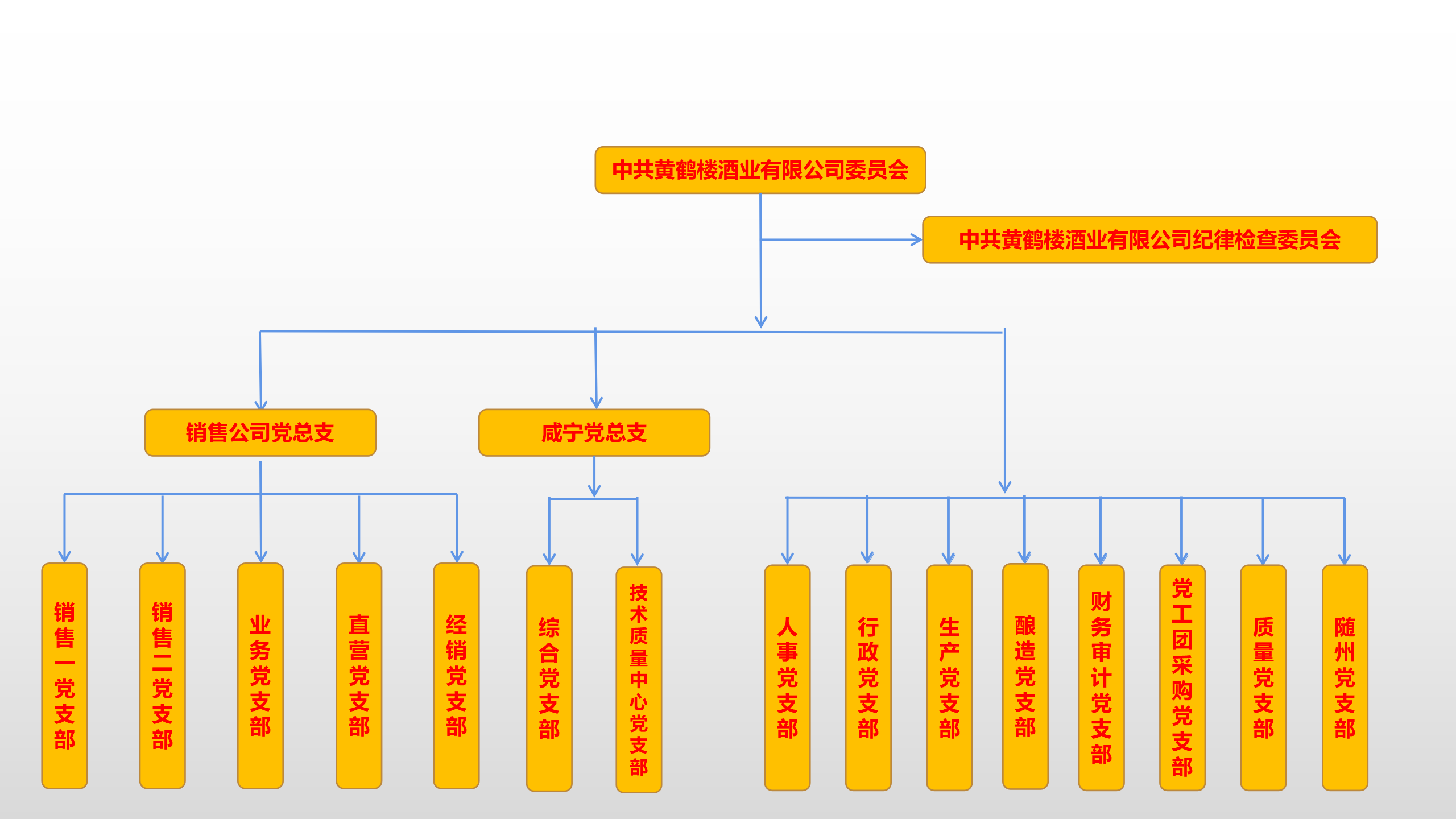 黃鶴樓酒業(yè)黨委于2010年3月成立,現(xiàn)有黨員200余人,黨委委員有7人,下設(shè)2個黨總支和15個黨支部。