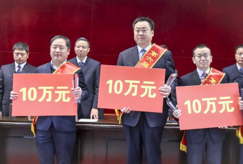 咸寧市政府連續(xù)六年以高規(guī)格會(huì)議頒發(fā)市政府質(zhì)量獎(jiǎng)、湖北名牌產(chǎn)品等獎(jiǎng)項(xiàng)。本次會(huì)議對(duì)榮獲“第六屆咸寧市政府質(zhì)量獎(jiǎng)”的天龍黃鶴樓酒業(yè)咸寧有限公司、湖北黃袍山綠色產(chǎn)品有限公司、穩(wěn)健醫(yī)療(嘉魚(yú))有限公司3家企業(yè)頒發(fā)獎(jiǎng)杯并分別獎(jiǎng)勵(lì)人民幣10萬(wàn)元。