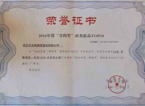 3月19日,在2017年中國國際酒業(yè)博覽會上,由中國酒業(yè)協(xié)會評定并頒發(fā)的2016年度酒類新品“青酌獎”正式揭曉,湖北中國名酒黃鶴樓酒戰(zhàn)略新品黃鶴樓酒?陳香,以更香、更柔、更順、更上層樓的中國名酒品質(zhì)風(fēng)范獲得中國酒業(yè)協(xié)會評委一致贊譽,斬獲“青酌獎”。