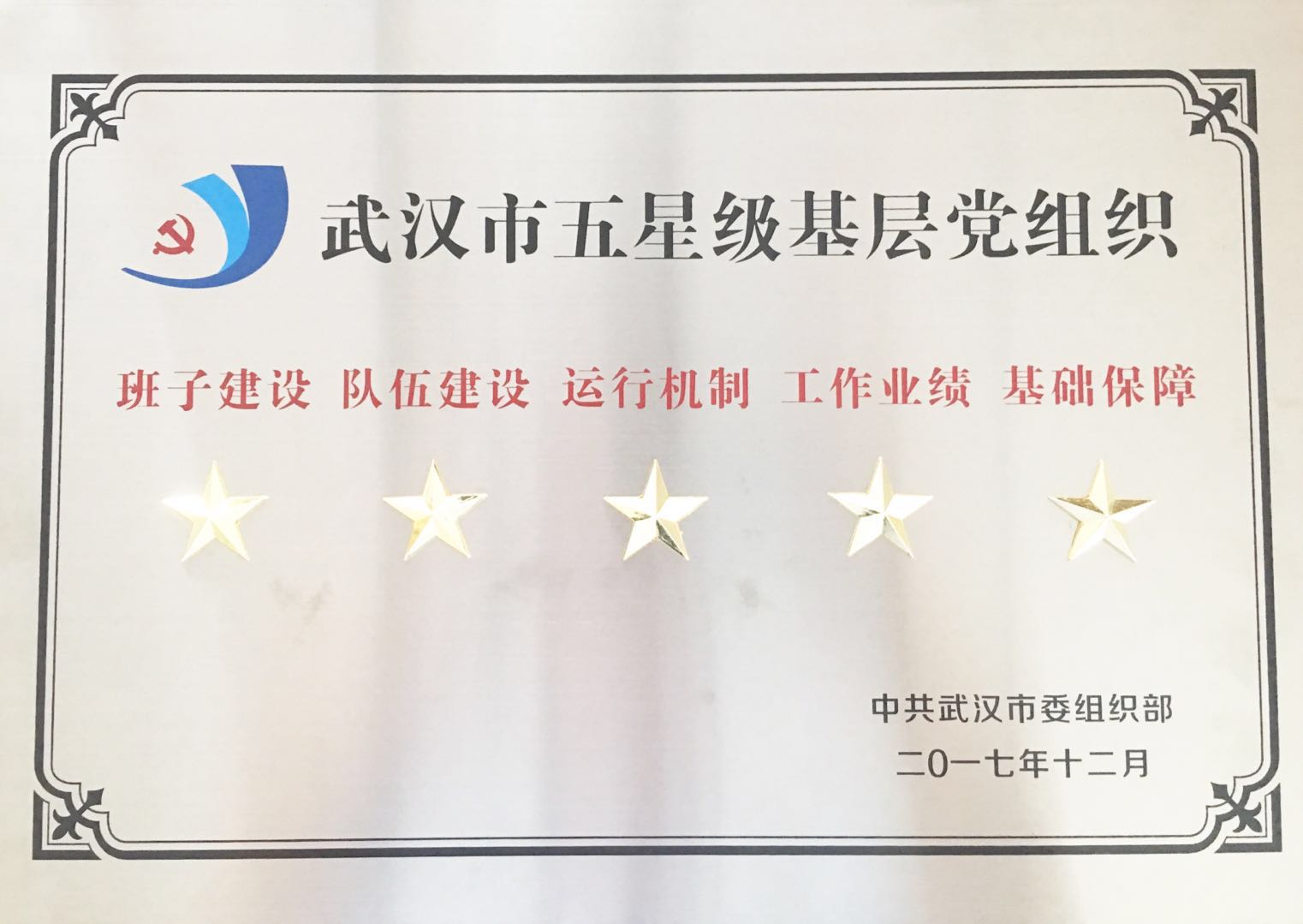 黃鶴樓酒業(yè)獲漢陽區(qū)“五星級基層黨組織”榮譽稱號