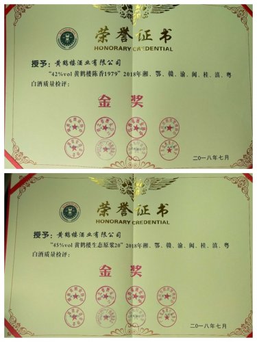 近日,在福建省福州市羅源縣舉行的第十屆“閩湘鄂贛渝桂滇粵酒類質(zhì)量檢評交流會(huì)”上,黃鶴樓酒業(yè)的“45度黃鶴樓生態(tài)原漿20”、“42度黃鶴樓陳香1979”獲評金獎(jiǎng)產(chǎn)品榮譽(yù)稱號。