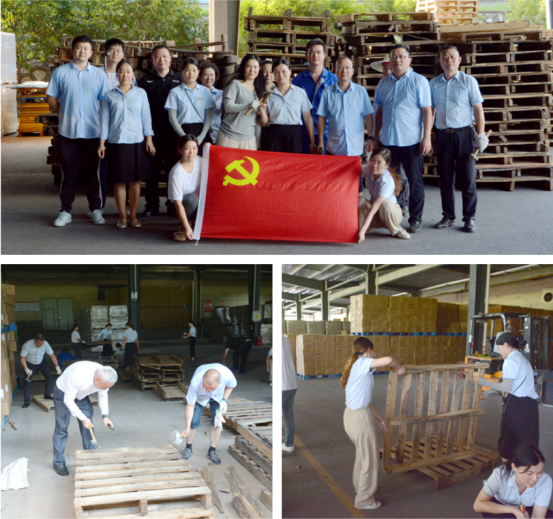 活動現(xiàn)場,全體黨員熱情高漲、分工協(xié)作,紛紛拿起各自維修工具,熟練地將出現(xiàn)松動、脫釘、斷裂等問題的廢舊托盤進行加固修復(fù),經(jīng)過數(shù)小時努力,一批原本即將報廢的托盤被修復(fù)一新,即將重新投入生產(chǎn)使用。