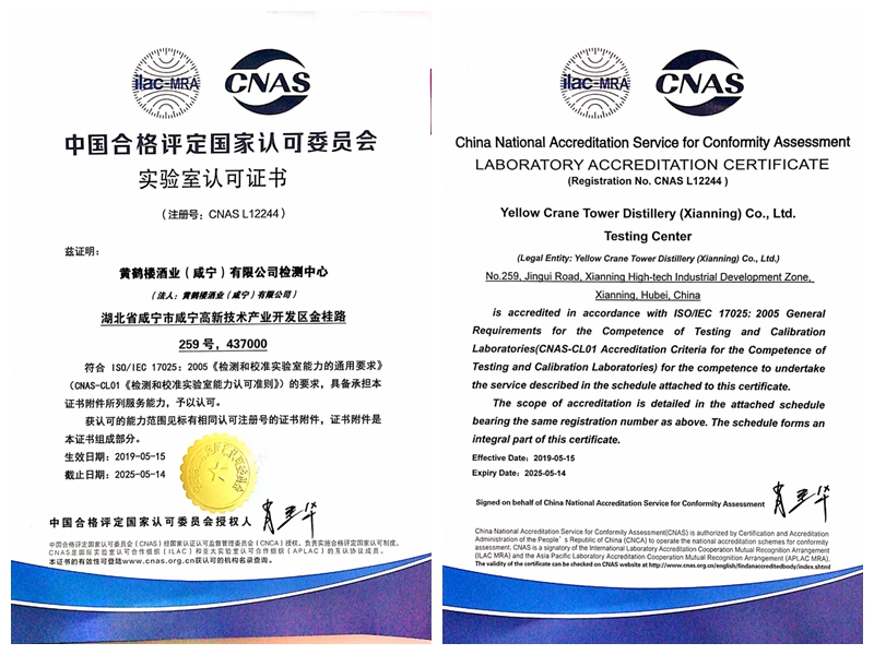 近日,黃鶴樓酒業(yè)咸寧檢測中心通過CNAS(中國合格評定國家認可委員會)認可,獲得由中國合格評定國家認可委員會(CNAS)頒發(fā)的國家實驗室認可證書。