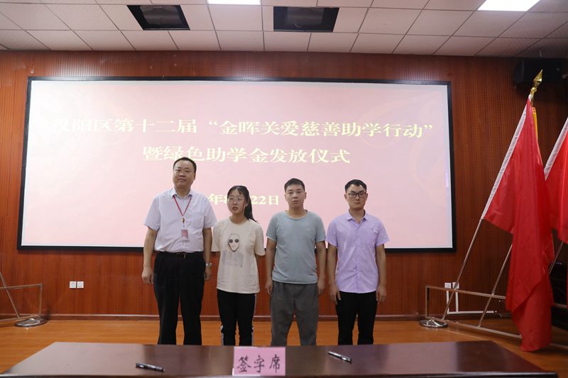8月22日,漢陽區(qū)第十二屆“金暉關(guān)愛慈善助學行動”暨“一個都不該少”綠色助學金發(fā)放儀式在黃鶴樓酒業(yè)舉行。湖北省關(guān)工委辦公室主任尹明志,武漢市關(guān)工委常務(wù)副主任羅友松,武漢市關(guān)工委辦公室主任向婭麗,武漢市慈善會副會長何鳴,漢陽區(qū)政府副區(qū)長皮惠蘭,漢陽區(qū)關(guān)工委主任李德祿,黃鶴樓酒業(yè)黨委書記、董事長許鵬,總經(jīng)理助理魏國出席活動。漢陽團區(qū)委書記肖瀟主持會議。