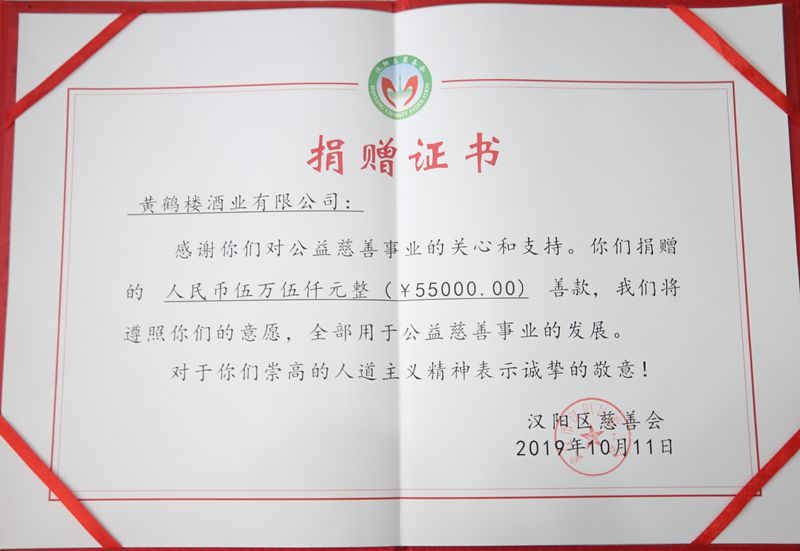近日,黃鶴樓酒業(yè)“金暉助學(xué)”共資助11名貧困大學(xué)生,捐出助學(xué)金5.5萬(wàn)元,漢陽(yáng)區(qū)慈善會(huì)特授予捐贈(zèng)證書。